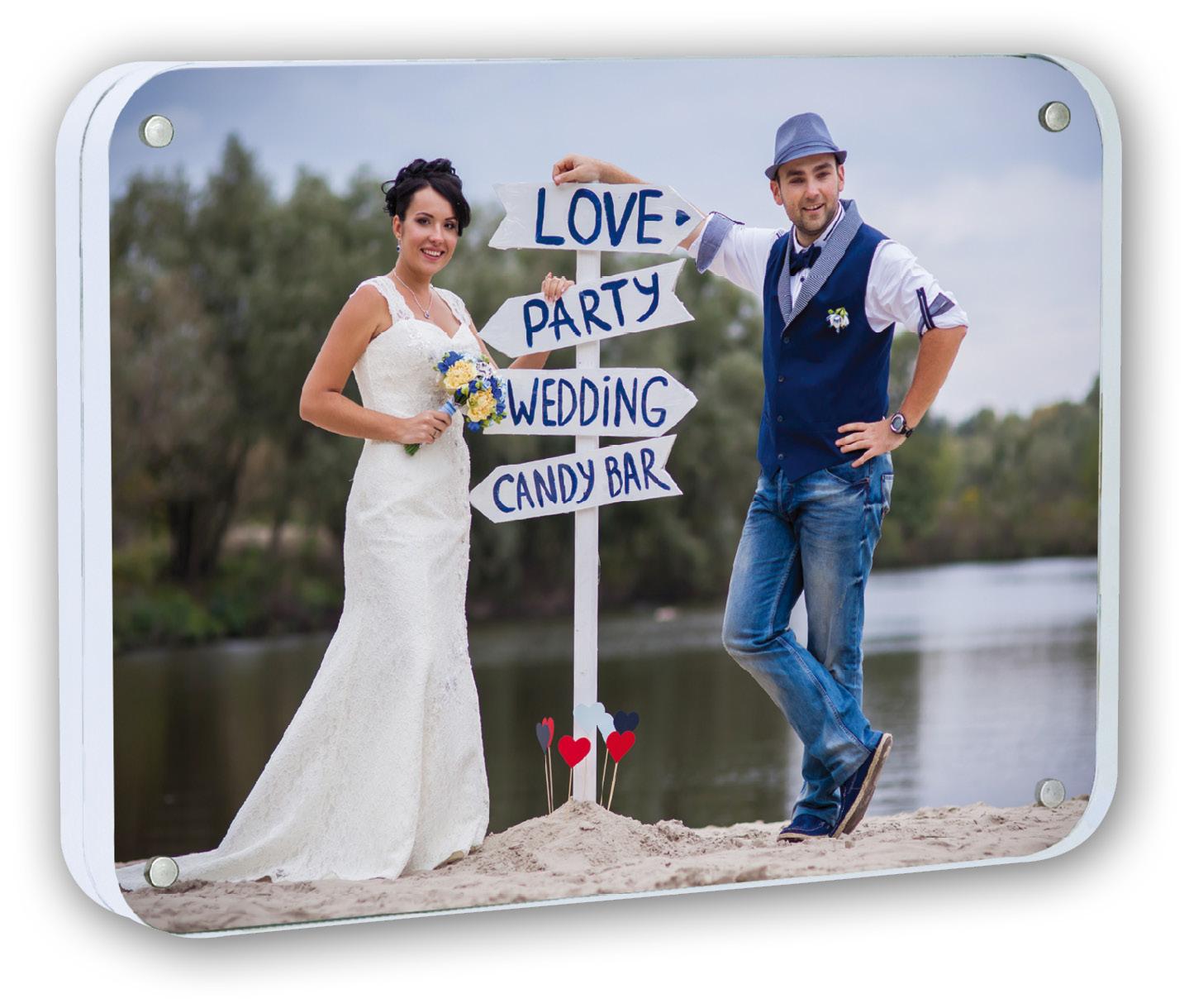 Cadre photo unique à double face qui se compose de deux épaisses plaques en plexiglas qui sont magnétiques. Placez vos images entre les plaques et assemblez ces plaques. Comme c'est facile ! Convient très bien sur une bibliothèque ou sur un bureau.