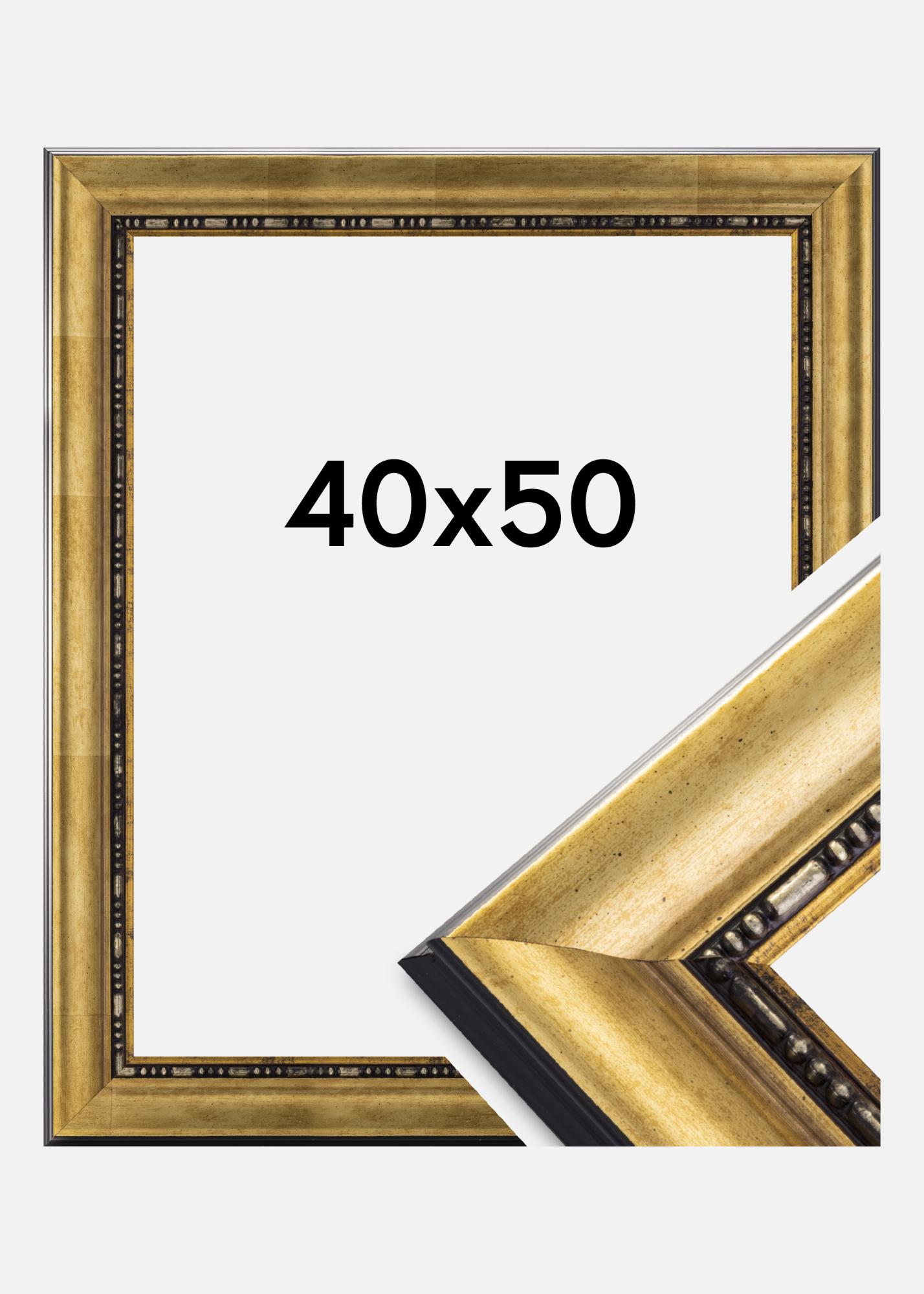 Cadre pour portrait classique pour les images que vous adorez. Le cadre a des côtés noirs et une couleur dorée profilée sur le devant avec des décorations au plus proche du motif.