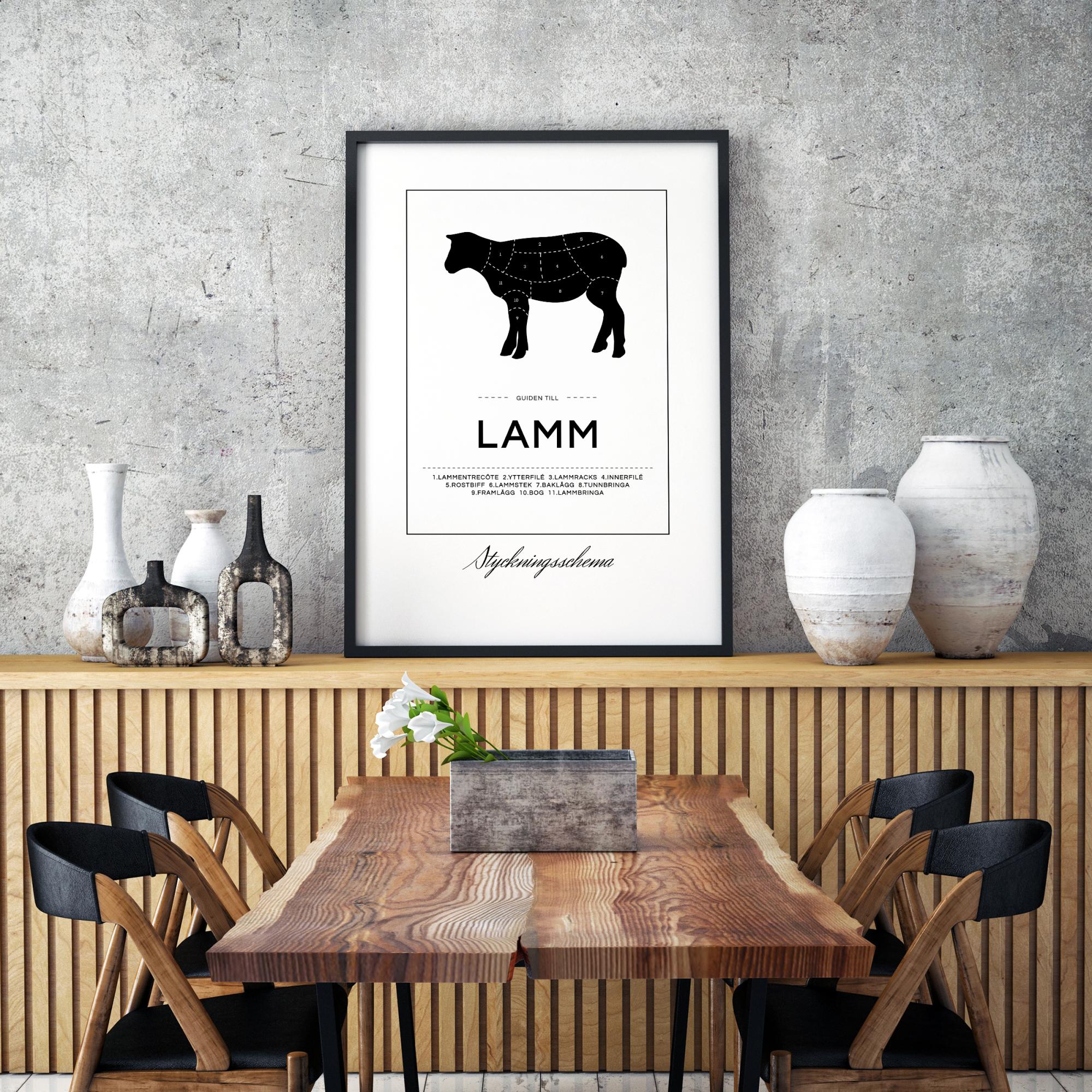 Le poster Schéma de découpe d'agneau est imprimé dans notre propre studio d'affiches sur un papier premium de 230 grammes qui est certifié FSC et résistant au vieillissement. Nous avons choisi cette épaisseur robuste et cette surface mate parce qu'elle offre une impression élégante sans reflets et a une sensation de qualité. Comme nous imprimons le produit nous-mêmes, notre impact sur l'environnement est également réduit.