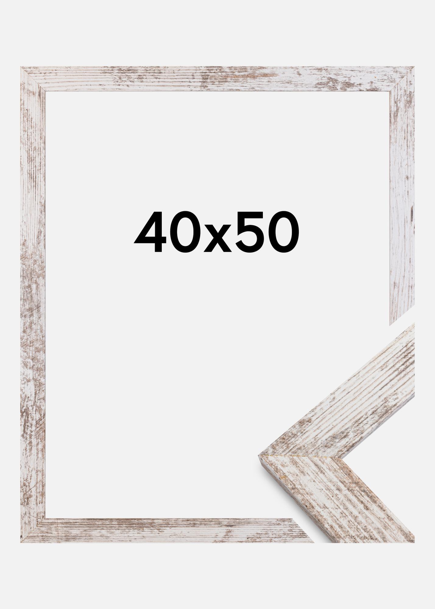 Joli cadre vintage avec un profil de cadre large à l'aspect usé en blanc et bois. Donne une dimension supplémentaire à vos images et s'adapte parfaitement lorsque vous voulez un cadre avec une sensation vintage authentique.