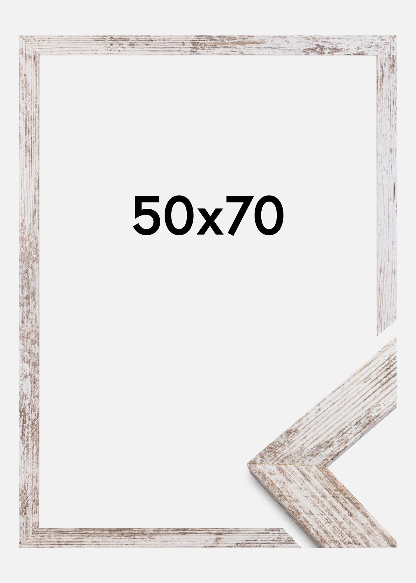 Joli cadre vintage avec un profil de cadre large à l'aspect usé en blanc et bois. Donne une dimension supplémentaire à vos images et s'adapte parfaitement lorsque vous voulez un cadre avec une sensation vintage authentique.