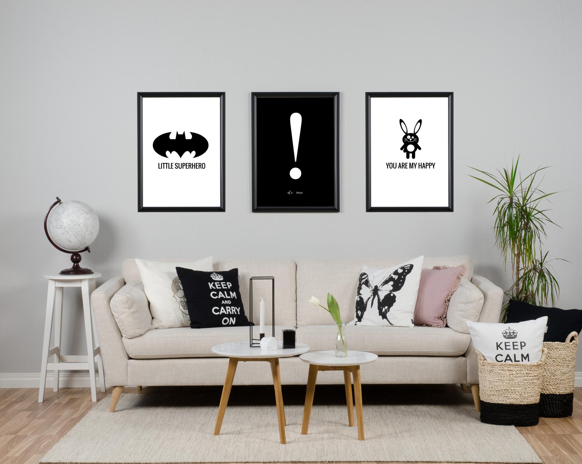 Nanananananananana Batman! Posters de super-héros pour tous les petits chauves-souris pour décorer leur chambre. L'illustration en noir et blanc graphique, avec une typographie épurée, s'adapte à tous les styles de décoration mais est bien sûr la plus adaptée pour les grottes humides. Combinez le poster avec l'un des autres prints dans le même style pour créer une série - Dino Favorite, Elefant Dream, Hund Little, Superhero ou Kanin Happy.