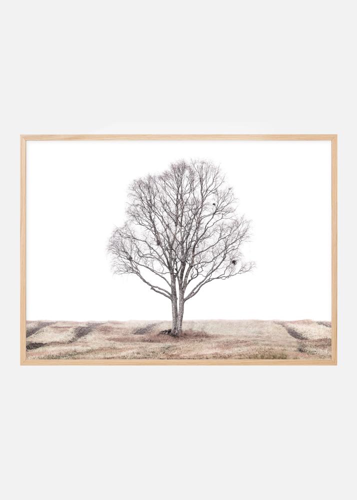 Une affiche austère d'un arbre solitaire en hiver. L'arbre dénudé se trouve au milieu d'un champ recouvert de neige, sur un fond blanc éclatant. Il est majestueux, mais il dégage aussi une atmosphère de froid. Apportez un peu d'hiver dans votre maison avec cette image fascinante et égayez un mur sombre.