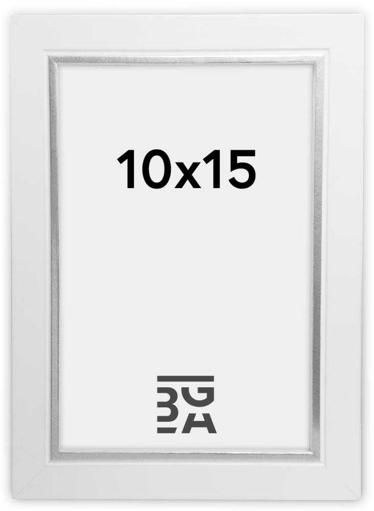 Cadre photo épuré en bois blanc avec un petit "Twist" supplémentaire sous la forme d'un joli bord argenté au plus proche du motif . Un cadre parfait pour les images en format portrait. Parfait à placer sur une étagère pour cadres pour un joli assemblage.