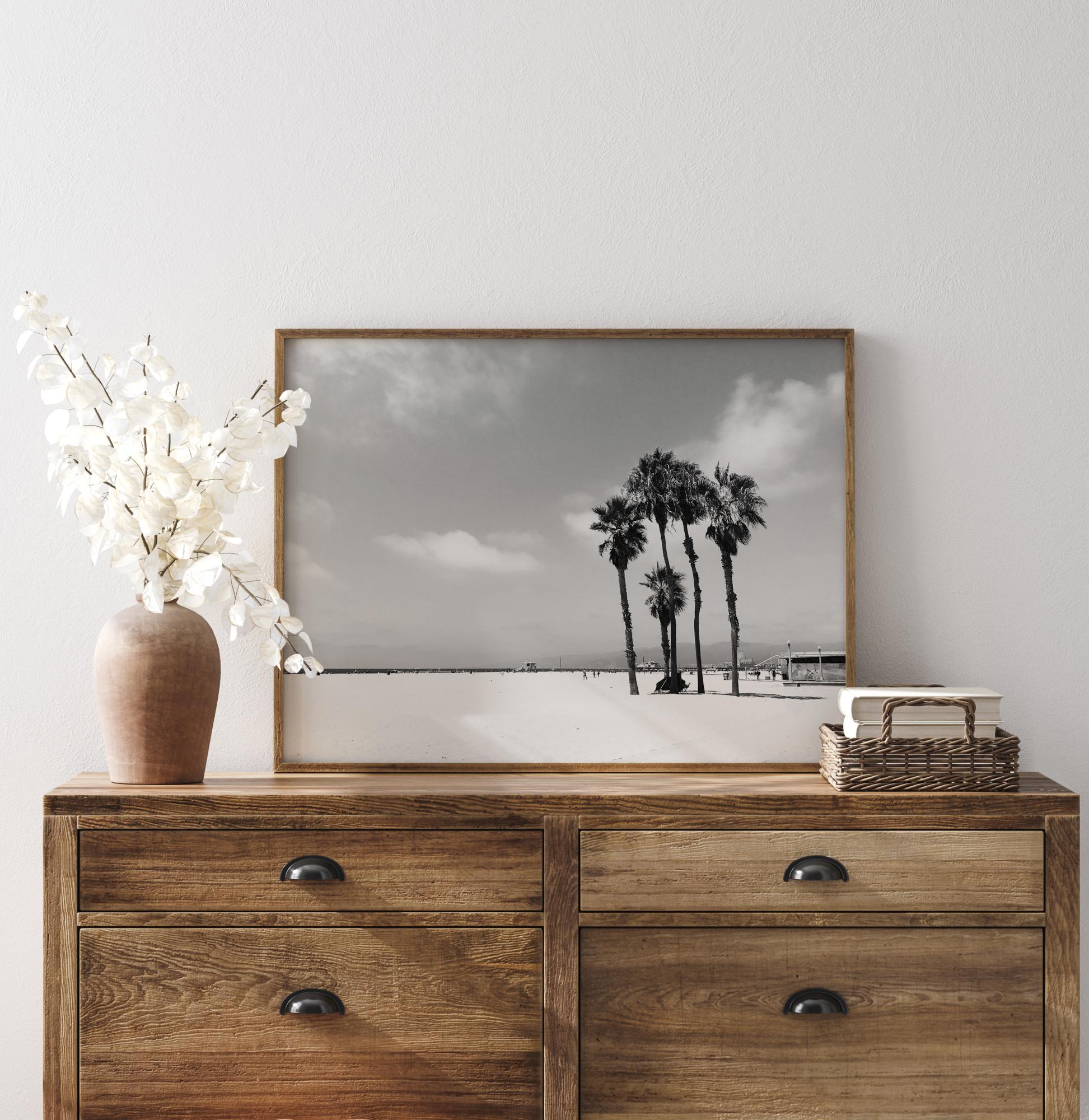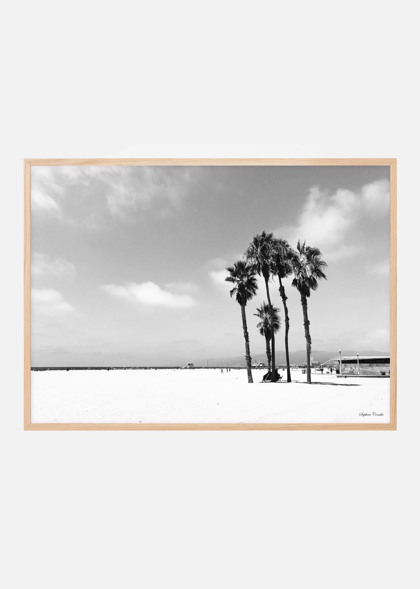 Ici, le photographe Saphira Consilio nous emmène à la plage blanche de Venise. Là, les gens partagent l'espace avec de beaux palmiers, des parcs d'attractions et les tours de sauvetage des maîtres-nageurs. Une belle poster en noir et blanc au format paysage.