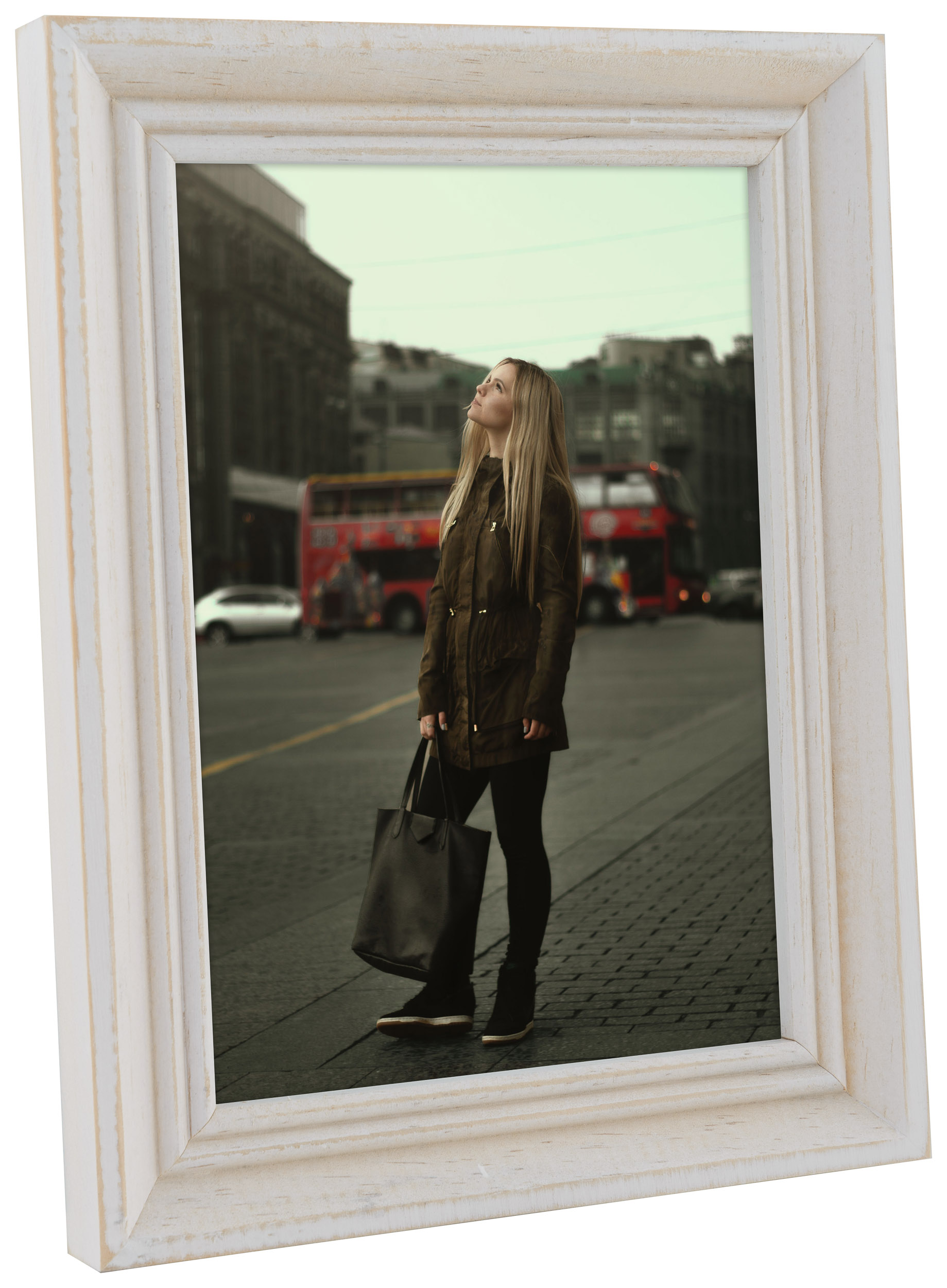 Si vous aimez les accessoires avec du caractère, nous avons un super cadre photo au style passé qui donne une touche vintage à vos images. Le cadre est fabriqué en bois avec une silhouette classique. Il est peint en blanc et traité pour avoir l'air ancien. Le cadre parfait à utiliser lorsque, par exemple, vous souhaitez mettre en valeur une vieille photo ou bien encadrer des décorations que vous avez vous même créées.