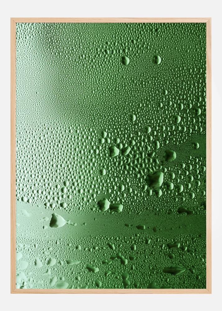 Redécouvrez la beauté simple des éléments de la nature avec notre affiche qui met en avant la fraîcheur des gouttes d'eau sur une surface brillante. Cette œuvre d'art capture le moment où les gouttes reposent tranquillement sur un fond vert vif, chacune reflétant la lumière et ajoutant profondeur et texture à la composition simple. Cette impression est un rappel subtil des nécessités pures de la vie et de la présence tranquille de la nature.