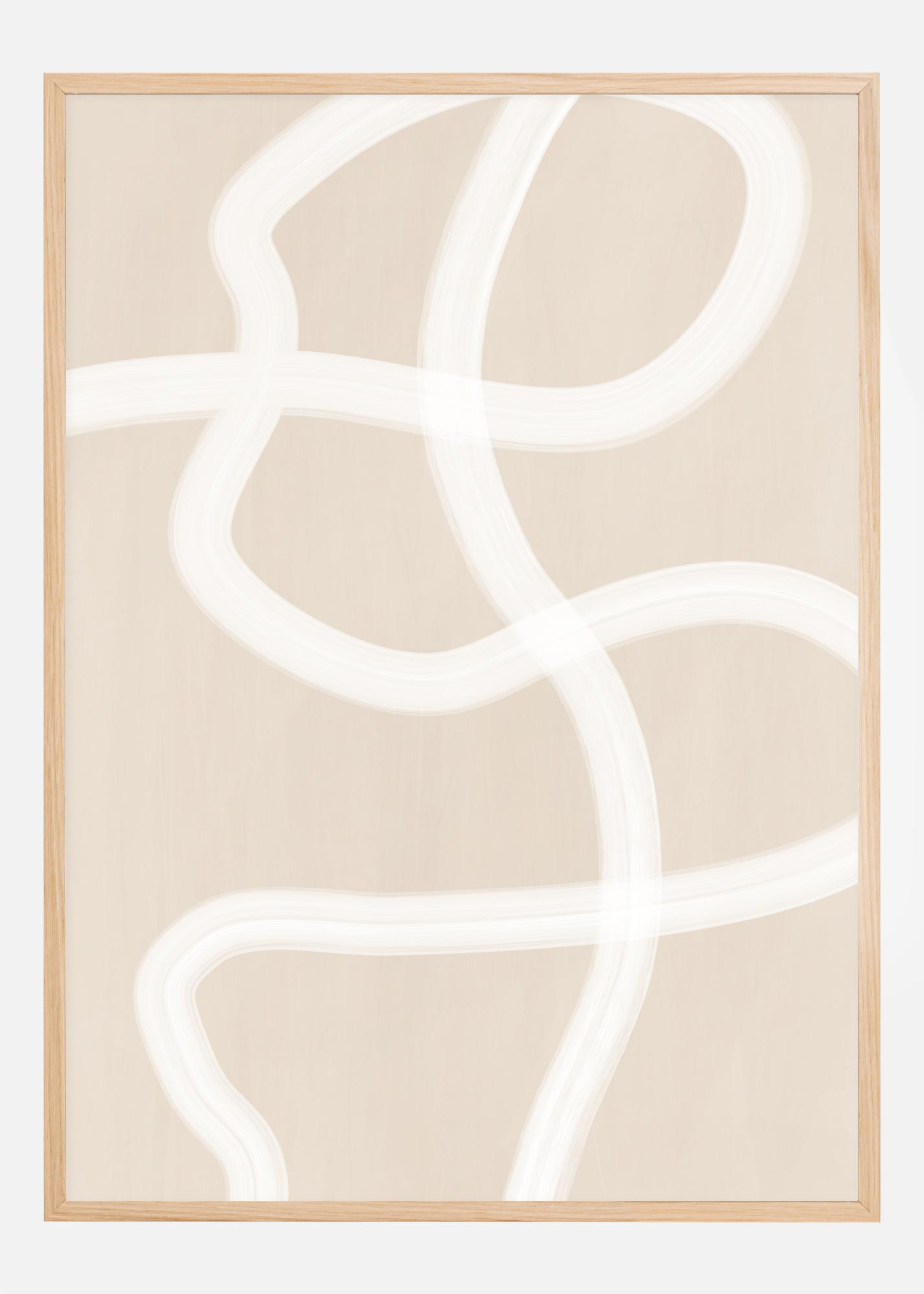 Les larges coups de pinceau blancs de cette affiche, sur un fond beige chaud, offrent une esthétique captivante et contemporaine. Ses lignes fluides et ses formes organiques donnent une impression de mouvement et de spontanéité, tout en conservant une sensation dépouillée et épurée typique du design minimaliste moderne.