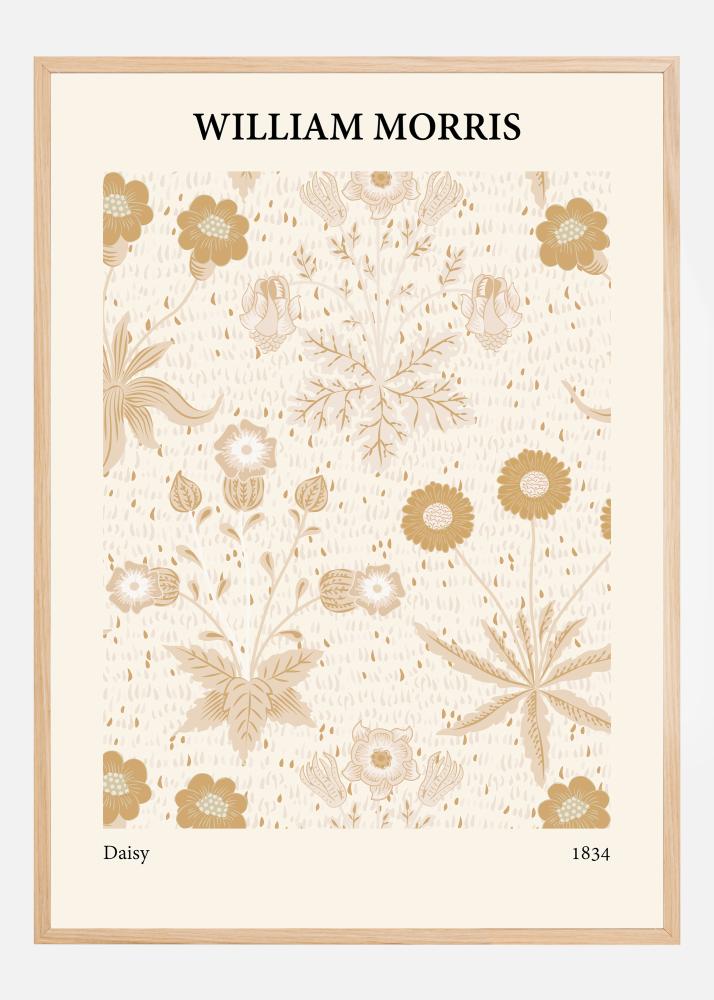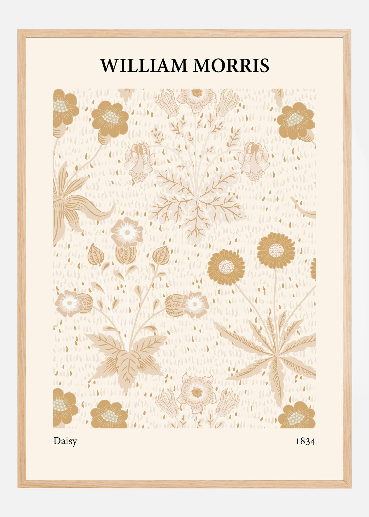 Cette affiche délicate et élégante représente un design classique de William Morris, connu pour son esthétique intemporelle et sa place dans l'histoire de l'art. Le motif est composé d'une collection harmonieuse de fleurs et de végétation, présentée dans une palette de couleurs douce et naturelle. Le design met en avant l'amour de Morris pour la nature avec des représentations détaillées de marguerites (paquerettes), de myosotis et d'autres éléments botaniques, dont le placement sur le papier crée une impression de calme et d'équilibre. Les couleurs qui dominent le motif sont des nuances de beige, crème et divers tons bruns qui, ensemble, apportent une sensation chaleureuse et accueillante à n'importe quelle pièce.