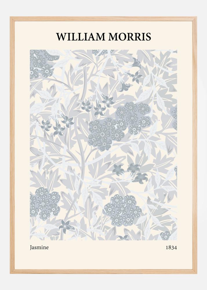 Cette affiche élégante et apaisante de William Morris, intitulée "Jasmine", dégage une sensation de tranquillité et de pureté. Le motif est une interprétation nuancée d'un jardin fleuri, avec des fleurs de jasmin et des feuilles dans des nuances de bleu pâle et de gris, magnifiquement placées sur un fond crème clair et apaisant. Ce print est un hommage à l'amour de Morris pour la nature et à sa capacité à capturer sa beauté dans ses motifs.