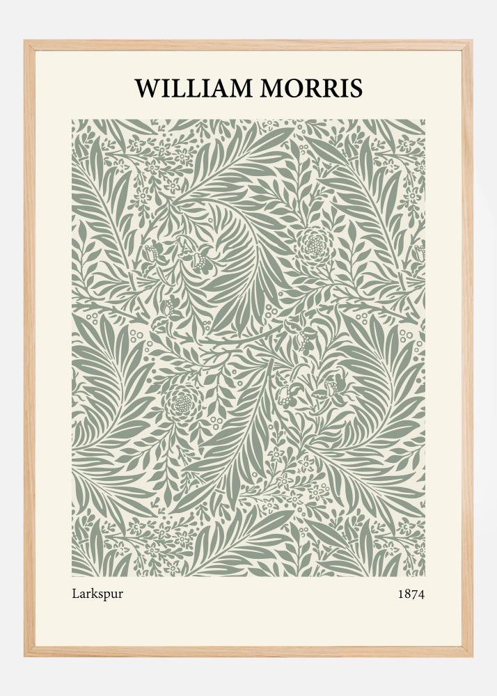 Cette affiche de William Morris, intitulée "Larkspur" de l'année 1874, présente une mer tourbillonnante de flore dans un design envoûtant et élaboré. Chaque élément de ce motif détaillé est largement entrelacé, créant un effet vivant et captivant. Cette impression serait un détail exquis dans toute maison qui valorise l'artisanat et l'esthétique naturelle du mouvement Arts and Crafts.