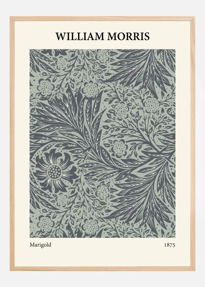 Cette affiche William Morris, avec son envoûtant motif "Marigold" de 1875, illustre la capacité unique de Morris à créer des illustrations botaniques détaillées et harmonieuses. Le motif est plein de vie et de mouvement, avec ses feuilles et fleurs enchevêtrées qui semblent émerger du papier lui-même. Les couleurs, dans des tons apaisants de vert et des nuances d'accentuation plus foncées, créent une impression à la fois élégante et fidèle à la nature.