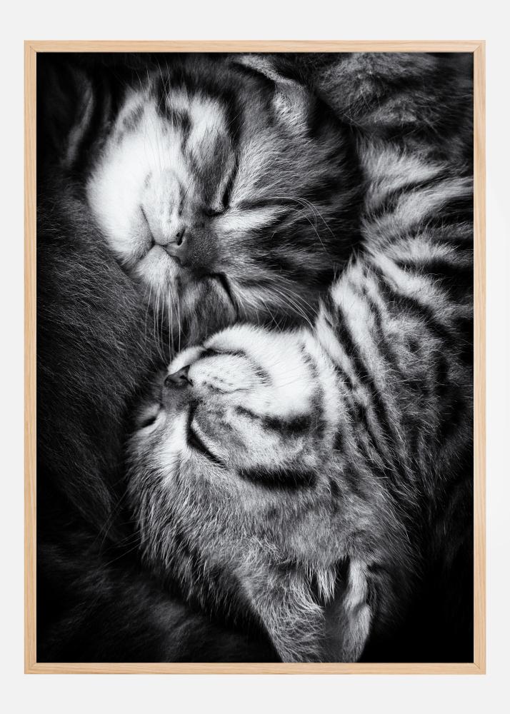 Un adorable poster animalier représentant deux chatons enlacés et endormis. Adoptez cette affiche pour votre intérieur et profitez de la sensation d'un câlin chaque fois que vous regardez ces adorables chats blottis l'un contre l'autre.