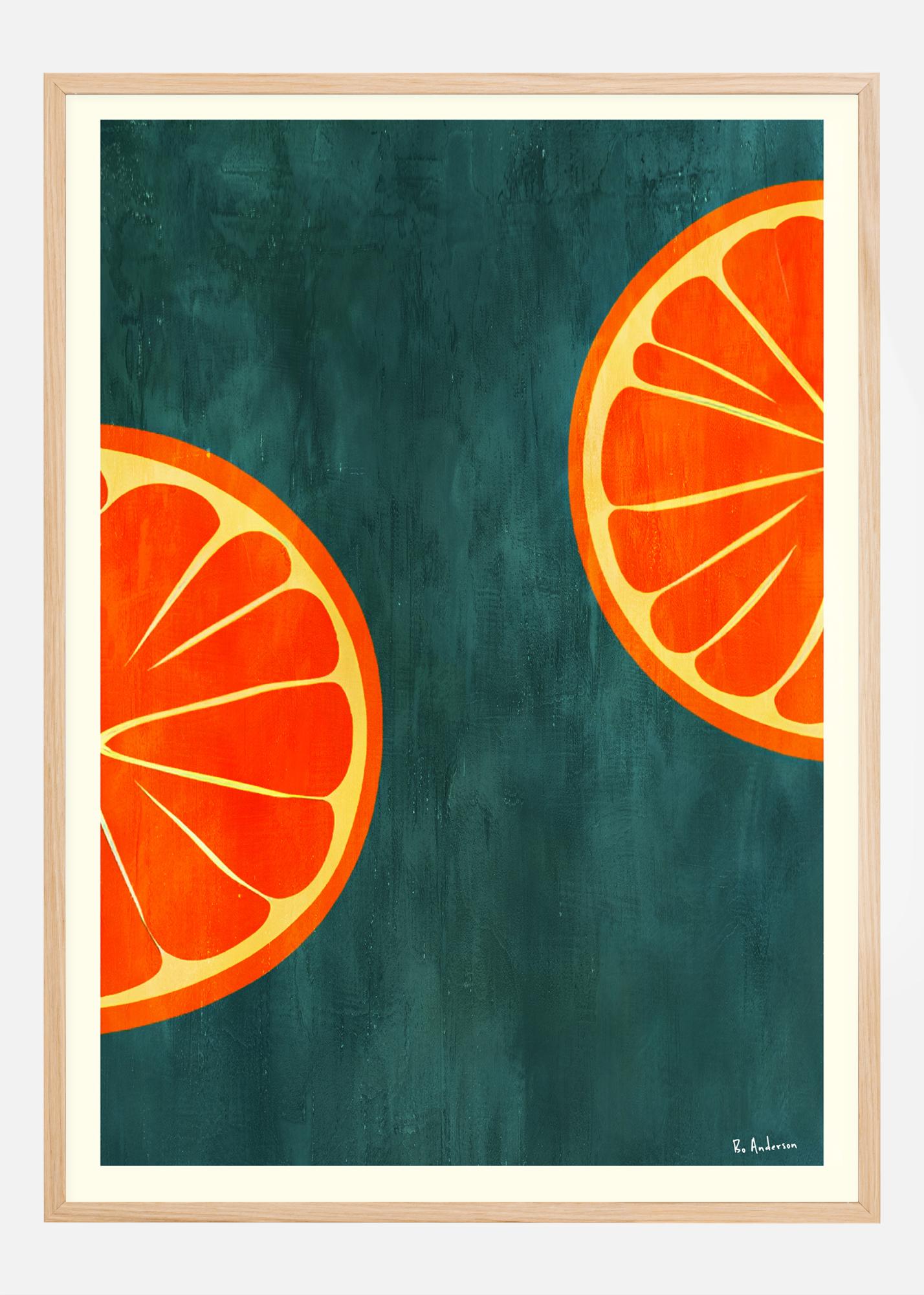 Ce poster lumineux et rafraîchissant représente deux moitiés d'orange sur un fond vert foncé, une image aussi énergisante qu'un verre de jus fraîchement pressé. Les riches tons orangés vibrants des tranches d'orange ressortent sur le fond profond, créant une image à la fois simple et frappante. C'est un design qui célèbre la simplicité et la beauté de la nature, et il ne pourrait pas être plus parfait pour illuminer une cuisine ou une salle à manger avec une touche de couleur.