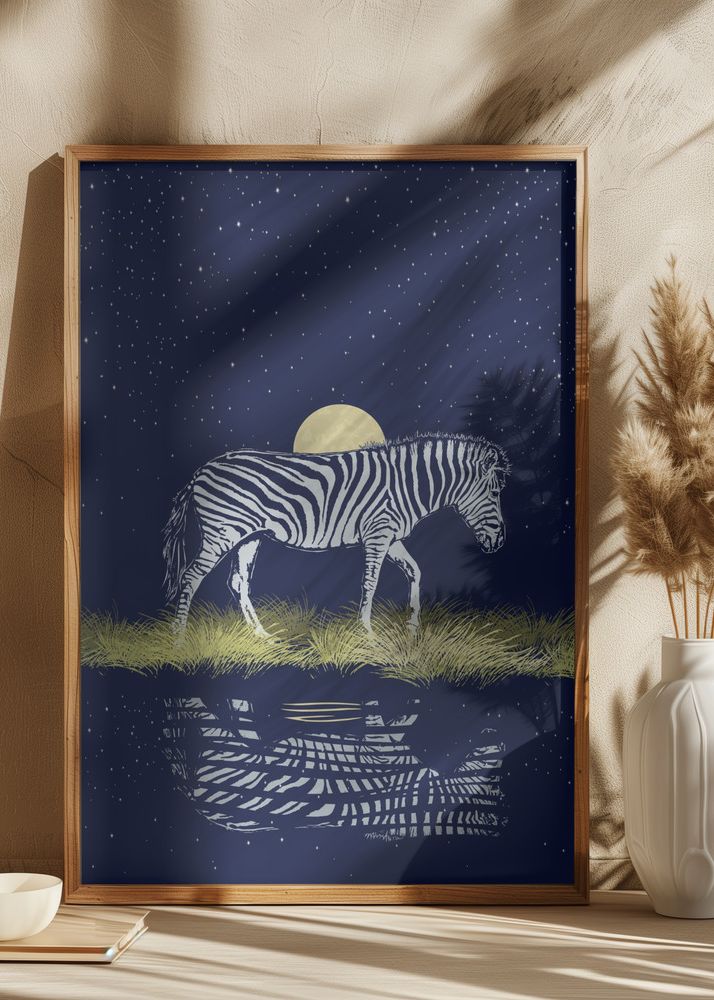 https://www.bgastore.fr/zebra-at-waterhole-moonrise-poster_21x29-7-cm-a4-